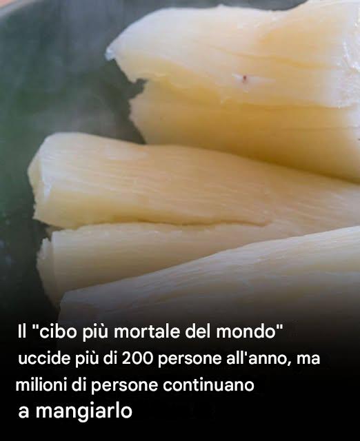 La manioca può sembrare un tubero dall’aspetto innocuo, ma le sue radici e foglie contengono glicosidi cianogenici, che si scompongono in cianuro se consumata cruda o non correttamente lavorata. Questo può portare ad avvelenamento da cianuro, causando gozzo, paralisi e morte. Secondo l’Organizzazione Mondiale della Sanità (OMS), l’avvelenamento da manioca uccide circa 200 persone all’anno, guadagnandosi il titolo di “cibo più mortale al mondo”. Sebbene rischiosa, la manioca fornisce sostentamento a oltre 800 milioni di persone in circa 80 paesi, secondo l’OMS. È resistente alla siccità, facile da coltivare e fornisce carboidrati essenziali. Se lavorata correttamente (ammollata, fermentata, essiccata o bollita), i livelli di cianuro diminuiscono, rendendola sicura da mangiare. Per molti, non è una scelta, ma una necessità per la sopravvivenza.