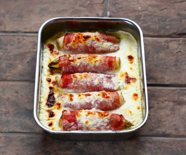 Le indivie con prosciutto sono uno di quei piatti classici francesi che ricordano i pranzi in famiglia o i bistrot accoglienti. Originarie del nord della Francia e del Belgio, dove sono chiamate cicons, le indivie sono spesso associate a un leggero sapore amarognolo. Tuttavia, se avvolti in una fetta di prosciutto e conditi con una cremosa besciamella, diventano irresistibilmente morbidi e gustosi. Un piatto davvero confortante che attraversa generazioni!